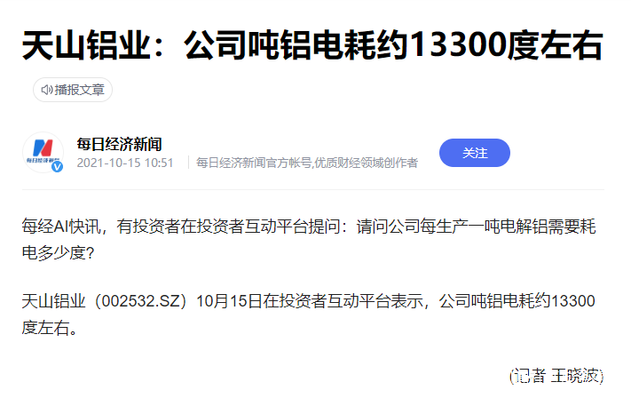 我們看看各個原料生產耗電如何