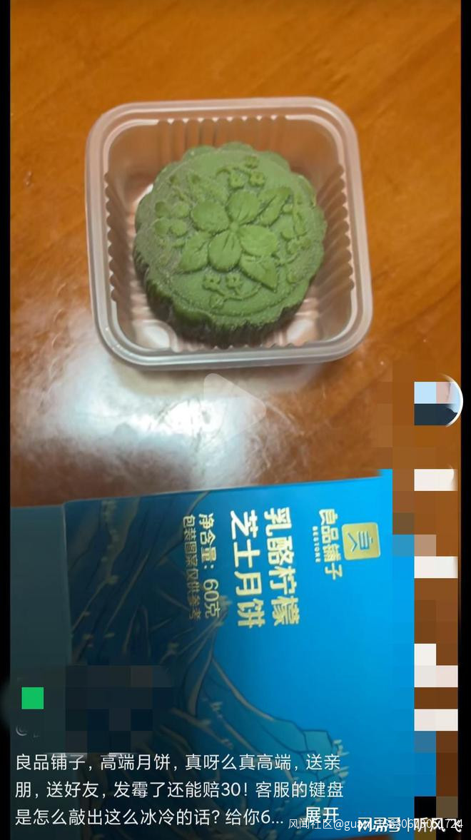 而就在9月10日,在剛剛過去的中秋節,某視頻平台一用户發佈動態稱,在良品鋪子京東旗艦店購買的高端月餅發黴,從視頻圖片能看到有清晰的黴變白點,客户找客服討要説法,客服稱僅賠償30元。