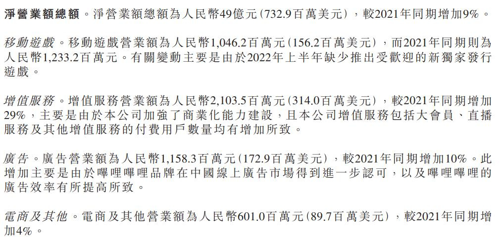 財報顯示,第二季度B站營收為49億元,較去年同期的44.95億元增長9%,而這一數字在一季度為50.5億元。