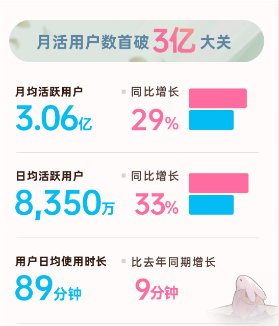 數據顯示,本季度B站社區整體流量同比增長48%;用户數據方面,本季度用户日均使用時長達到89分鐘,比去年同期增長9分鐘;月活躍用户突破3億,月均付費用户同比增長32%。