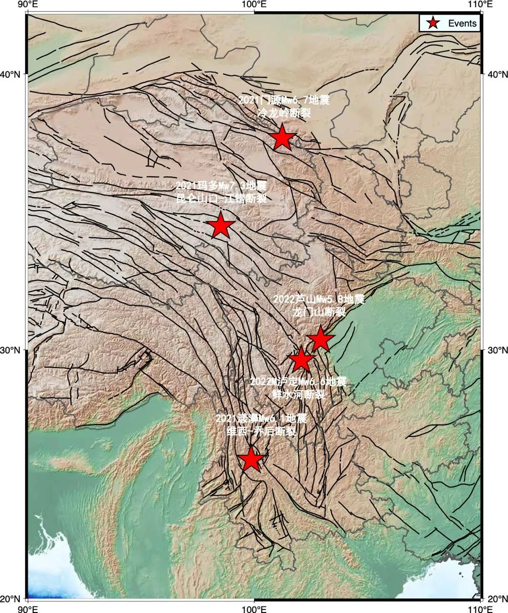 圖2 2021年以來我國主要地震和發生斷層