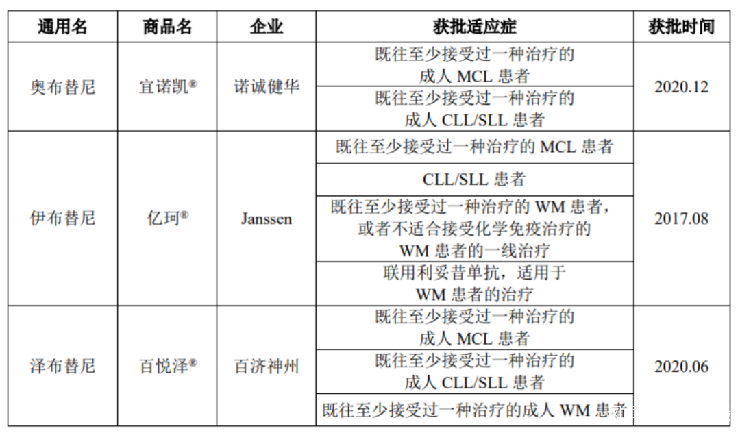 圖:中國獲批上市的BTK抑制劑,來源:招股書