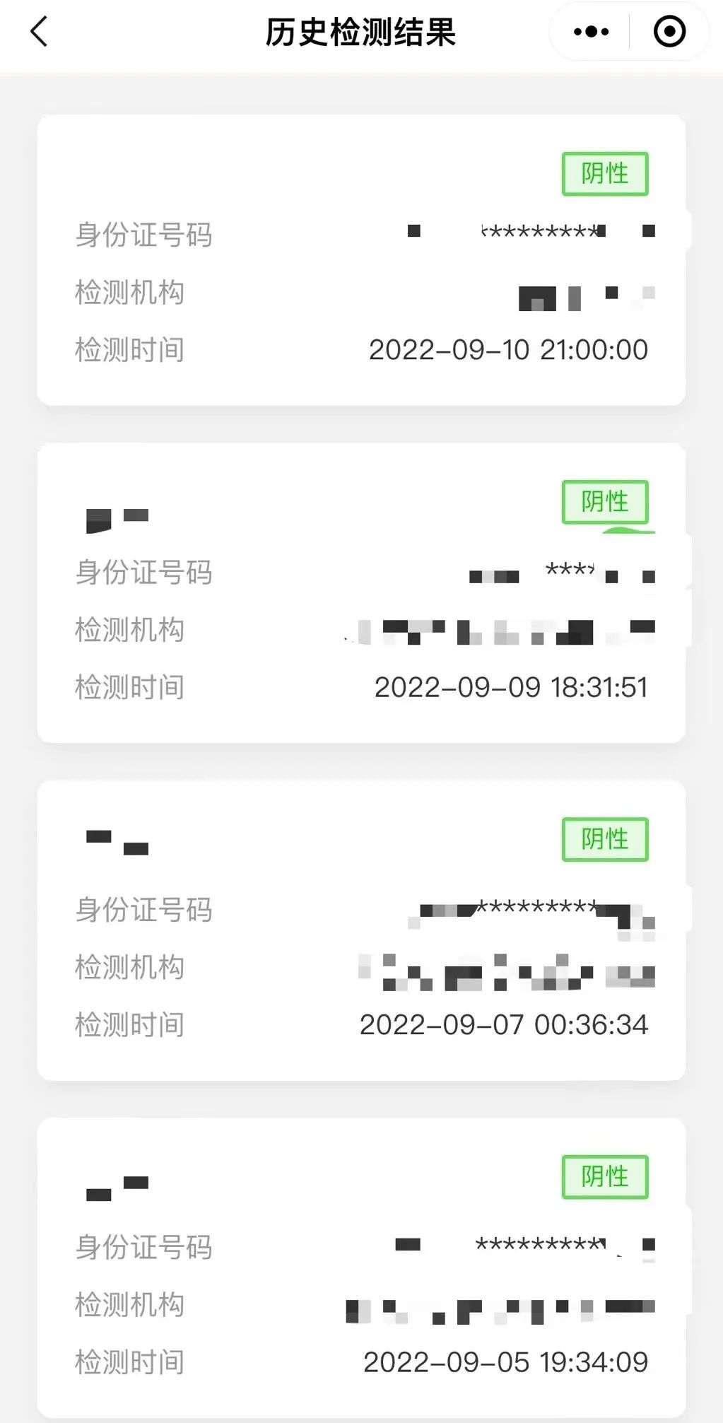 密集的核酸歷史檢測結果