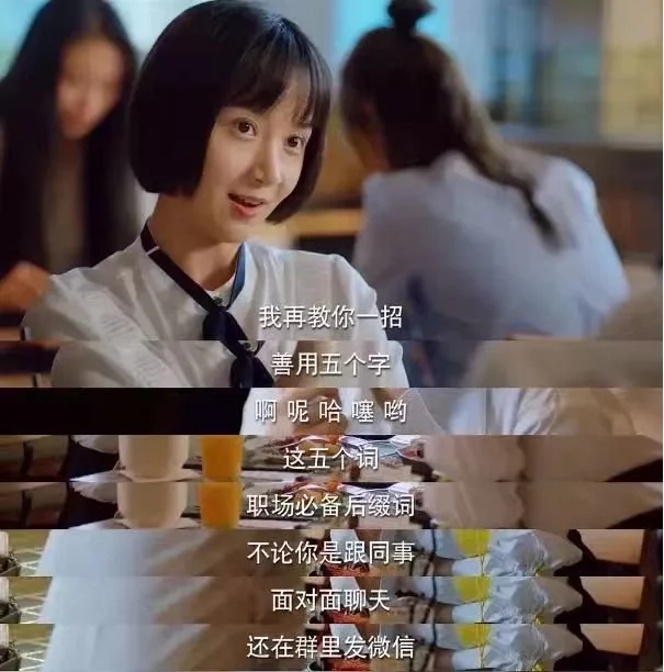 與朋友聊天不同,職場對話往往是處理、對接工作,內容偏“硬”,句子後面加個“哈”更能中和語氣中僵硬的成分,讓語調變得活潑、對話變得輕鬆,這是職場打工人專有的謹慎與卑微。