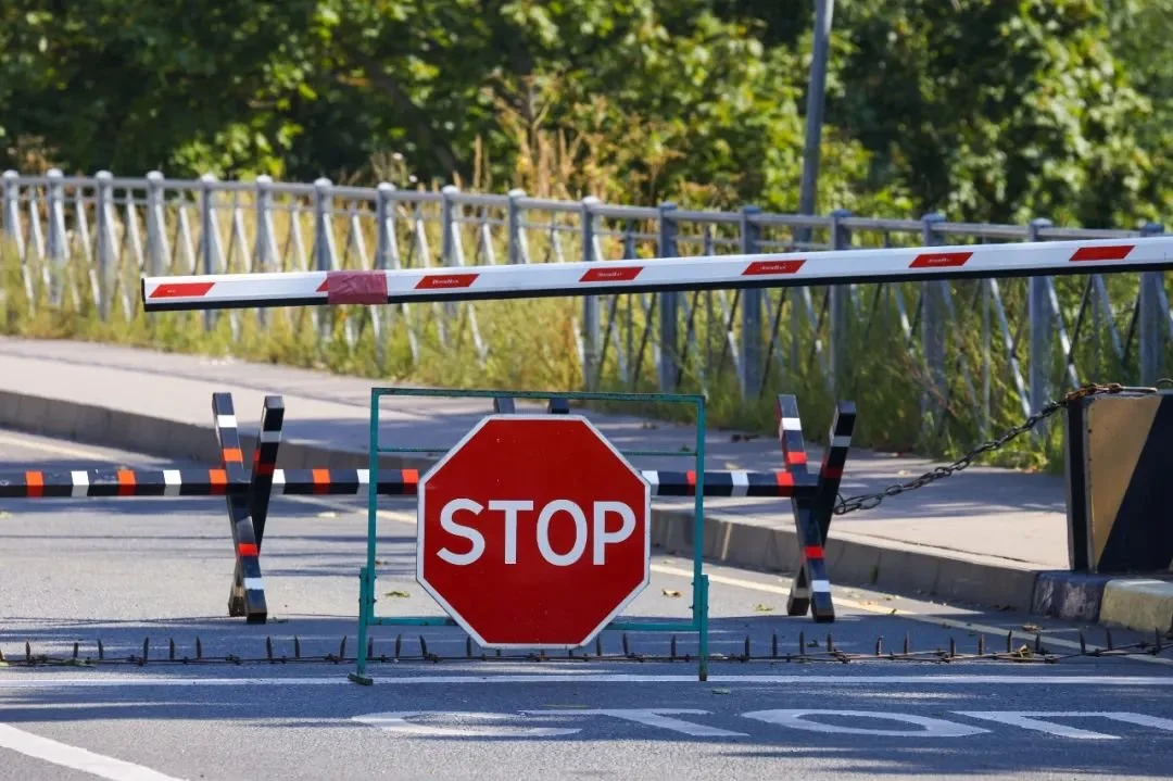 ▲當地時間2022年8月18日,俄羅斯列寧格勒地區,在與愛沙尼亞邊境的一個過境點,一個停車標誌出現。(人民視覺)