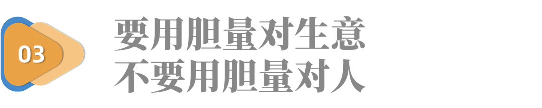 他説:要用膽量對生意,不要用膽量對人。