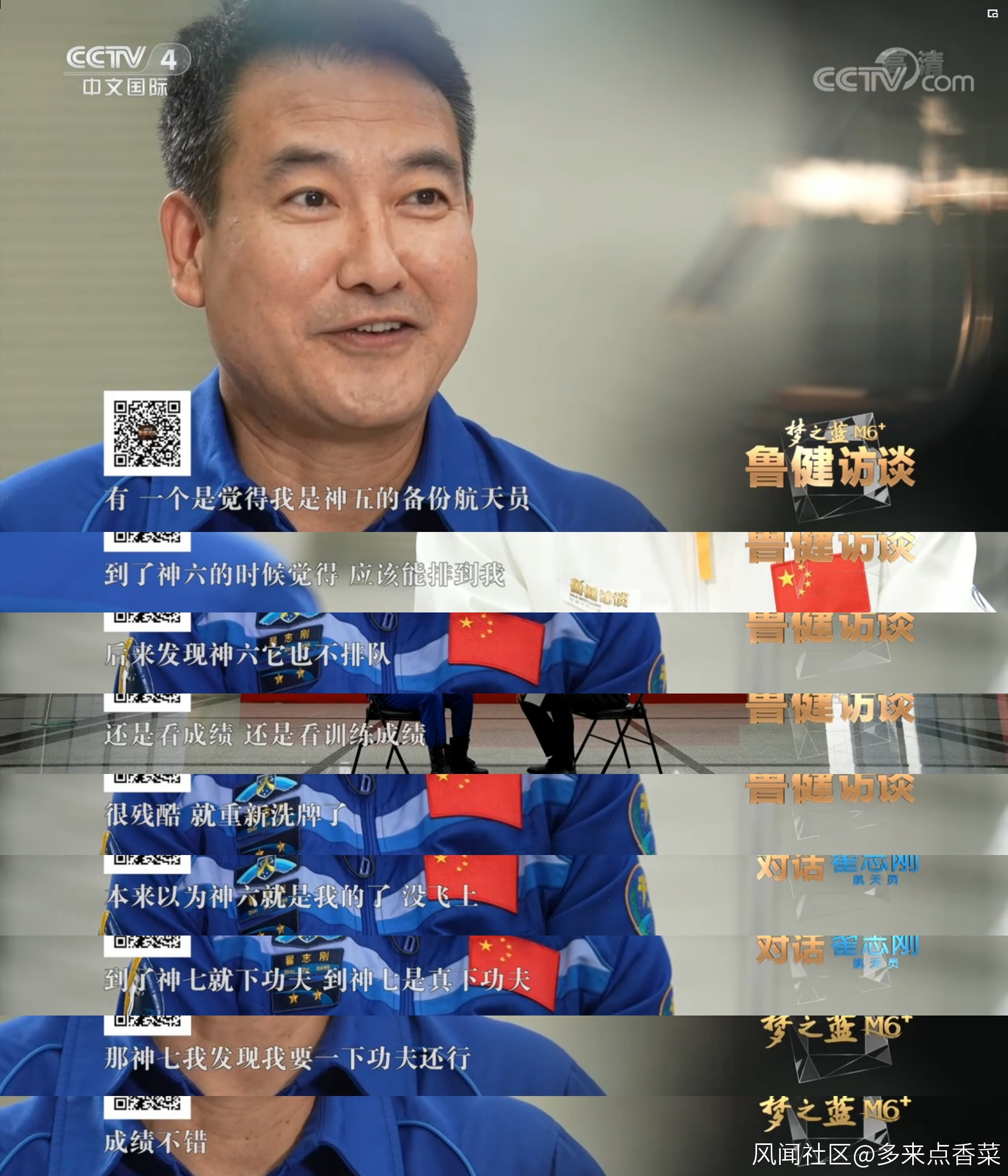 “一個是我覺得我是神五的備份航天員,到了神六的時候覺得應該能排到我,後來發現神六它也不排隊,還是看成績,還是看訓練成績。很殘酷,就重新洗牌了,本來以為神六就是我的了,沒飛上,到了神七就下功夫,到神七是真下功夫,那神七我發現我要一下功夫還行,成績不錯。”