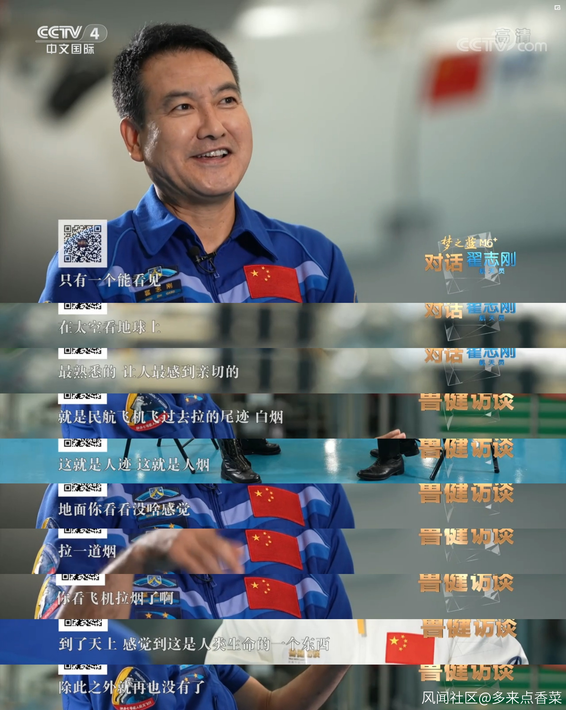 在這次採訪中,翟志剛回憶起在空間站的生活時談到,隨着在天上的時間累積,當一個人在舷窗看地球旋轉的時候發現,是看不見地球上那種生機勃勃,讓人有生命感的景象的。