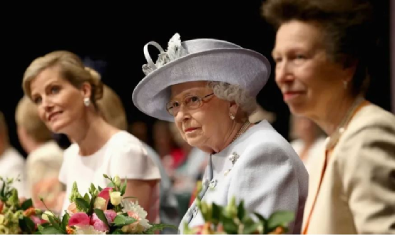 女王(中)和安妮公主(右)以及索菲(左)一起出席活動