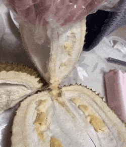 以前買榴蓮都是買果肉,這兩年開始流行“榴蓮盲盒”,帶殼買走,開出多少果肉算多少。於是有的人成了天選之子,買到報恩榴蓮,果肉一大盆。但並不是所有榴蓮都懂事兒——遇到來複仇的,就只開出幾塊“榴蓮糖”(誇張)。