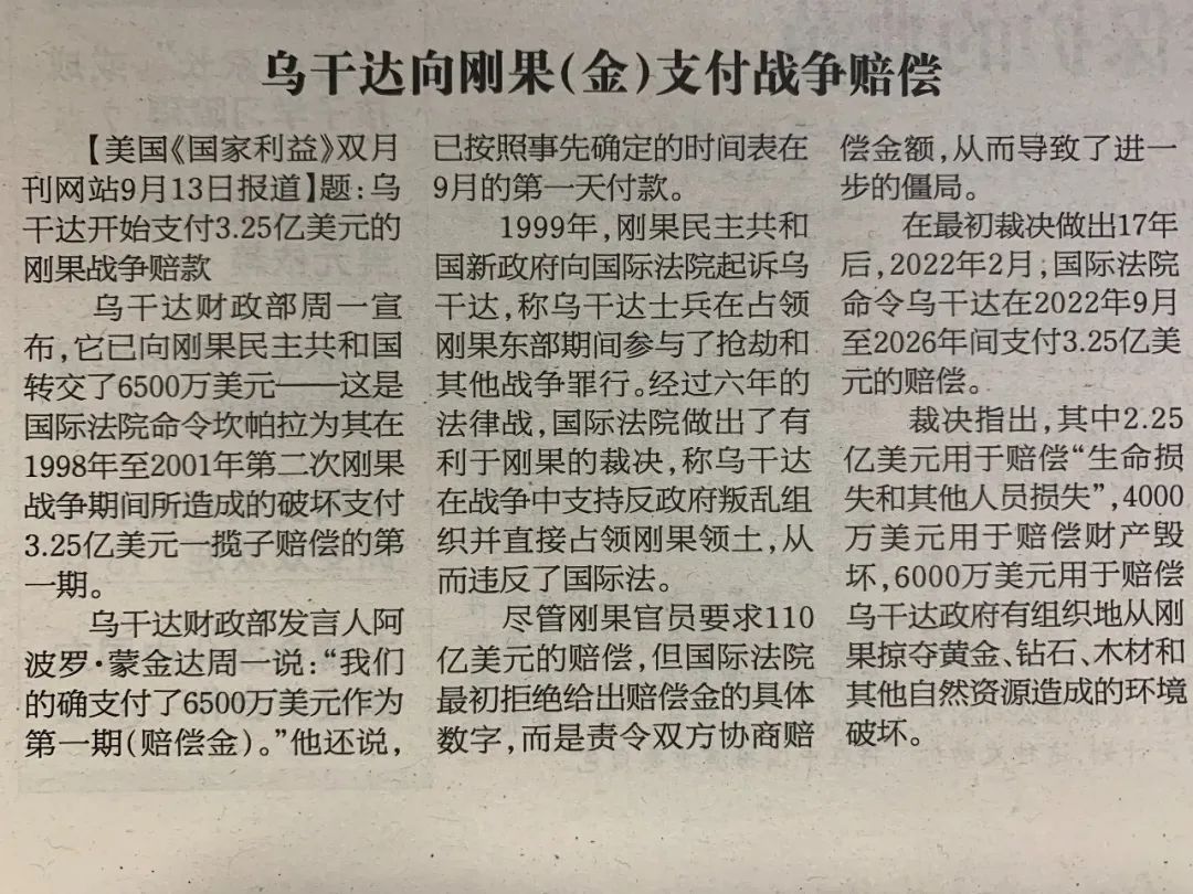 13. 烏干達向剛果(金)支付戰爭賠償 被國際法院裁決賠3.25億