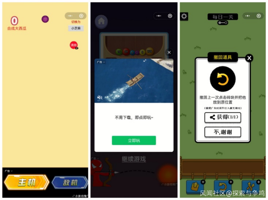 從左到右分別為橫幅類、插頁類和獎勵類廣告