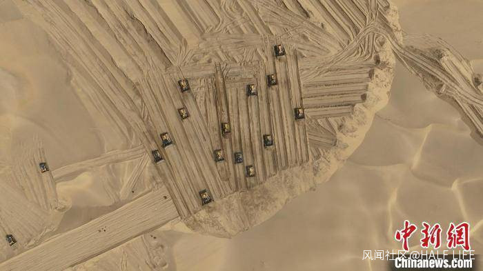 航拍沙漠施工場面。 崔顯朝 攝