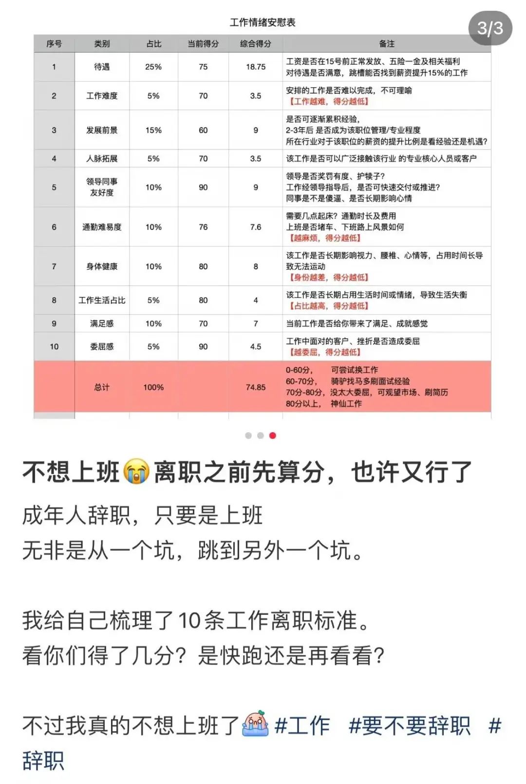 想辭不敢辭的打工人,還在算“工作情緒安慰表”