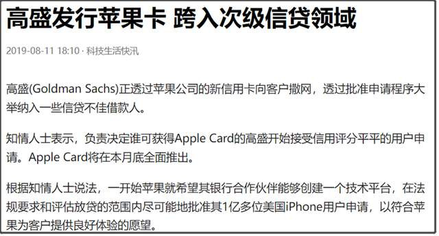 蘋果公司的Apple Card信用卡是跟高盛合作的。