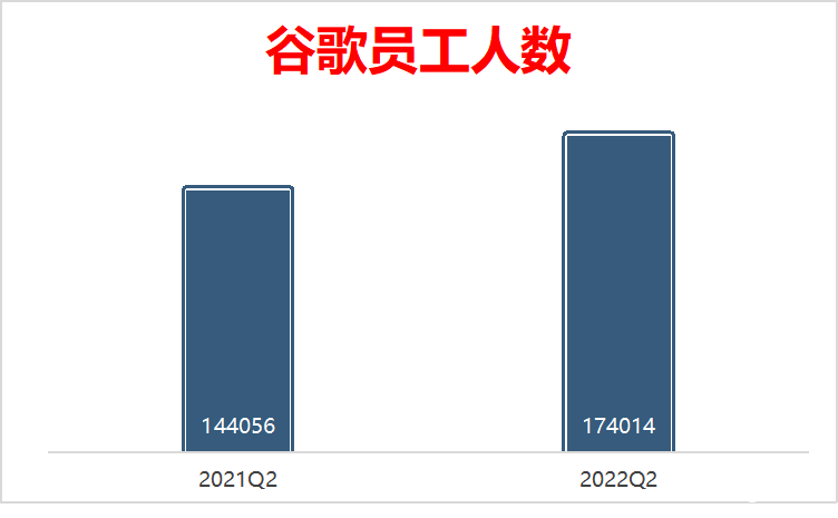據谷歌的財報顯示,谷歌2022年第一季度共有163906名員工,同比增長17%,到了第二季度增加至174014人,而而去年同期為144056人。