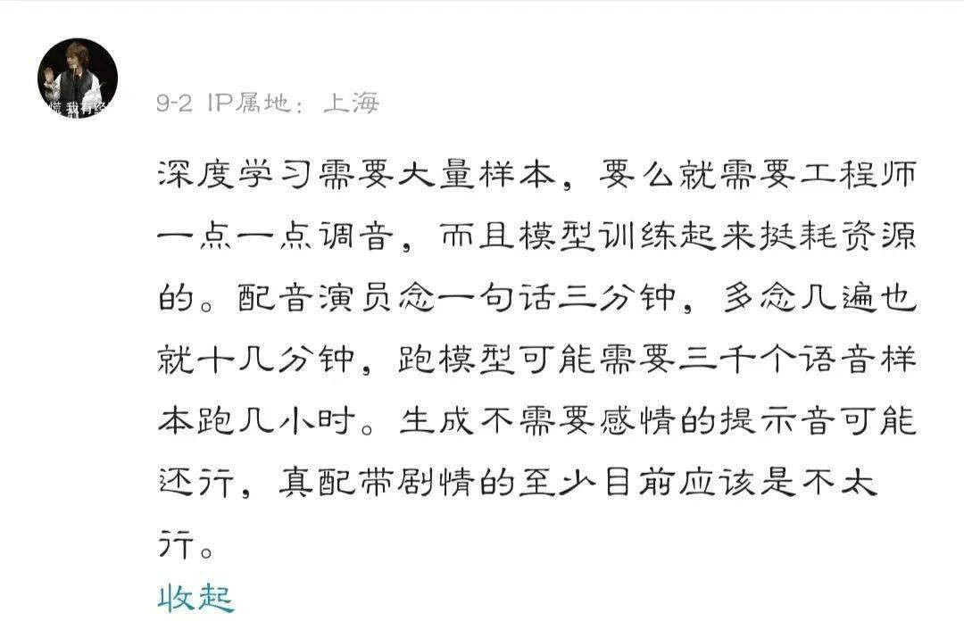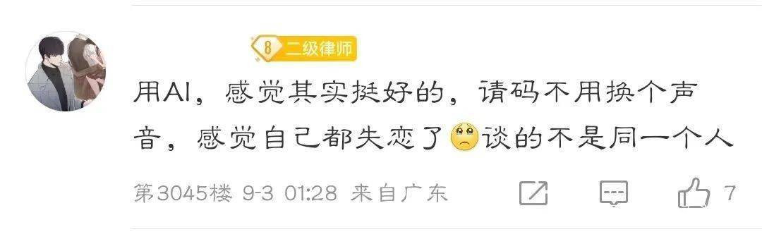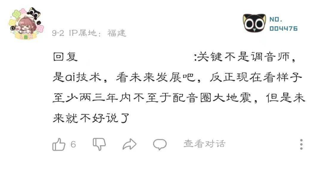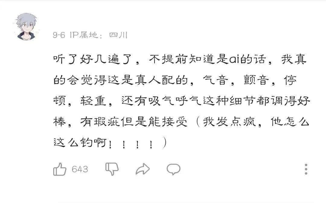 而在局勢尚未明朗的當下,更換CV也確實不合適,因此,使用AI配音,便成為了最優解。