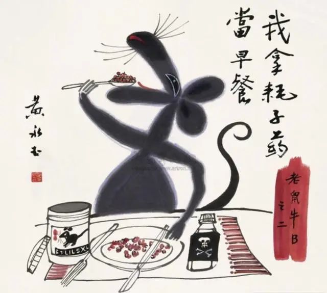 因此,當別的大師們都在研究畫山水畫、人物畫的時候,他卻酷愛畫老鼠,還要在上面題字。