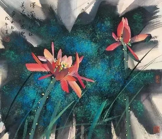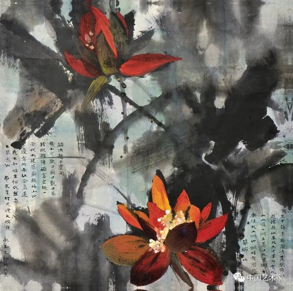 就比如他筆下的荷花,一掃過往高潔淡雅的風貌,變得燦爛、生機、熱烈,是真正的生如夏花。