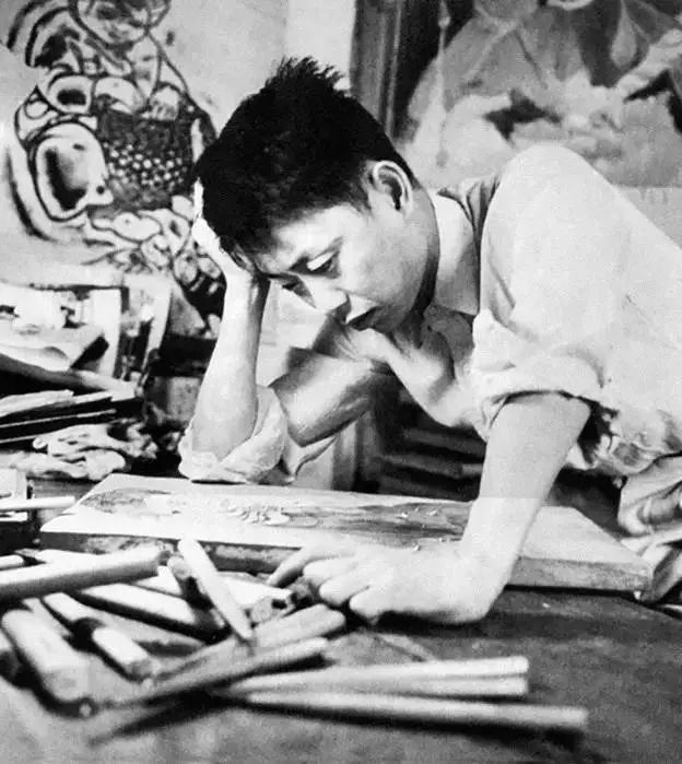 14歲,他靠着木刻的手藝,成為了當時中國東南木刻協會的會員。