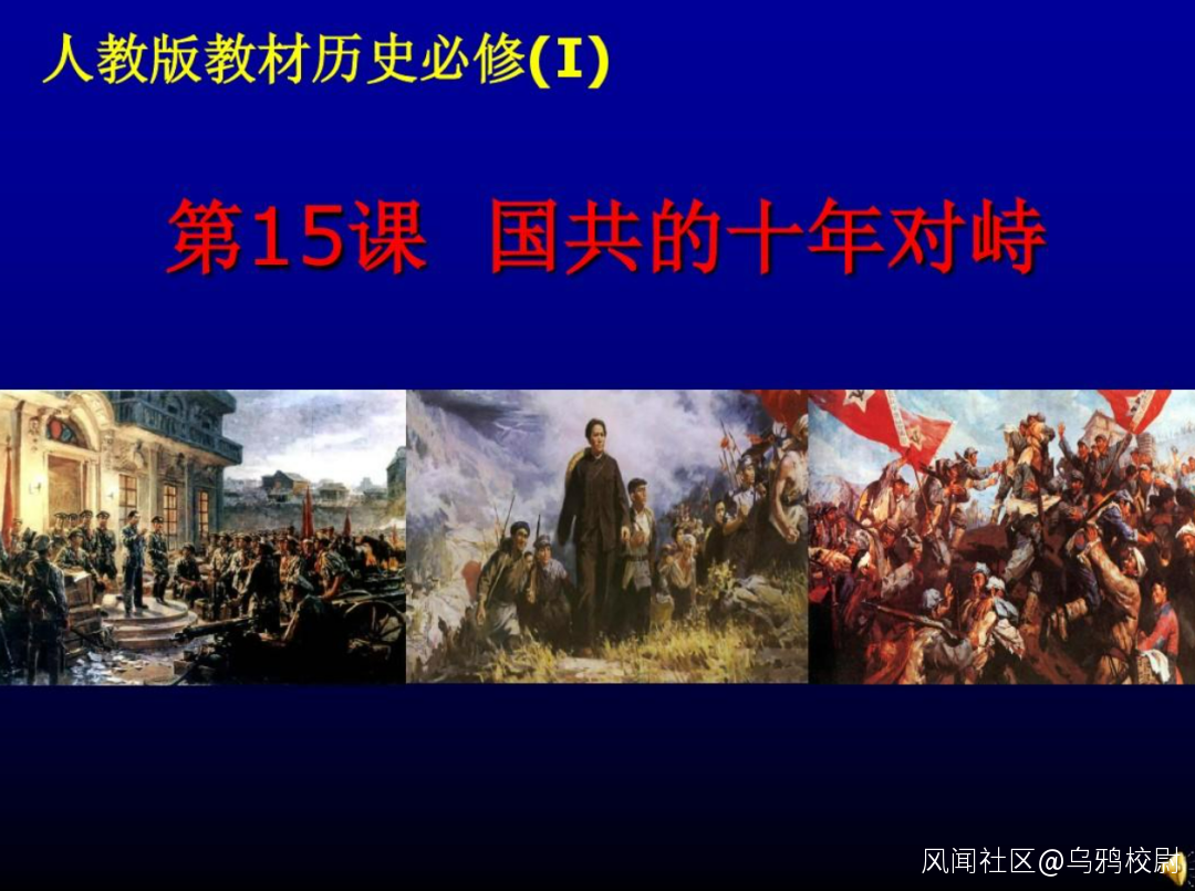 2007年人教版歷史教科書必修1第四單元第15課的課節標題為:《國共的十年對峙》。
