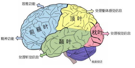 腦葉按照位置大致可以分為額葉、頂葉、枕葉、顳葉,對大腦進行區域劃分。每個區域承擔的功能不盡相同但又有所交叉,比如視覺功能主要位於枕葉、聽覺功能主要位於顳葉,刺激相應位置就會大腦機會產生對應的反饋,從而實現不同功能的腦機連接。