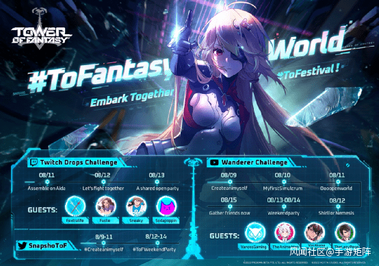 而在歐美最重要的直播平台Twitch上,《幻塔》的投放更加賣力。其與平台方合作的線上直播接力活動一度吸引到超25萬人同時在線觀看,遊戲熱度衝上全球TOP3。而《幻塔》選擇主播的原則更是簡單直接——誰直播《原神》火,就請誰來直播《幻塔》。