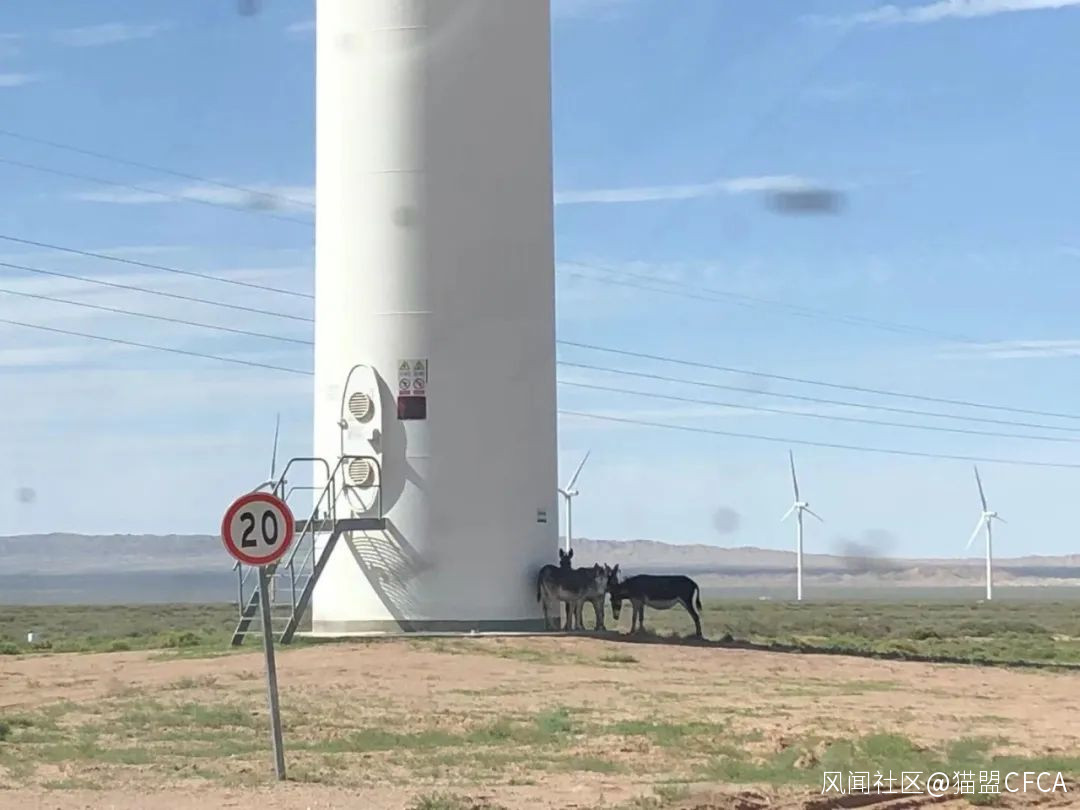 連荒漠裏的驢子都比我知道防曬,它們總是三三兩兩的躲在風機投下的陰影裏。