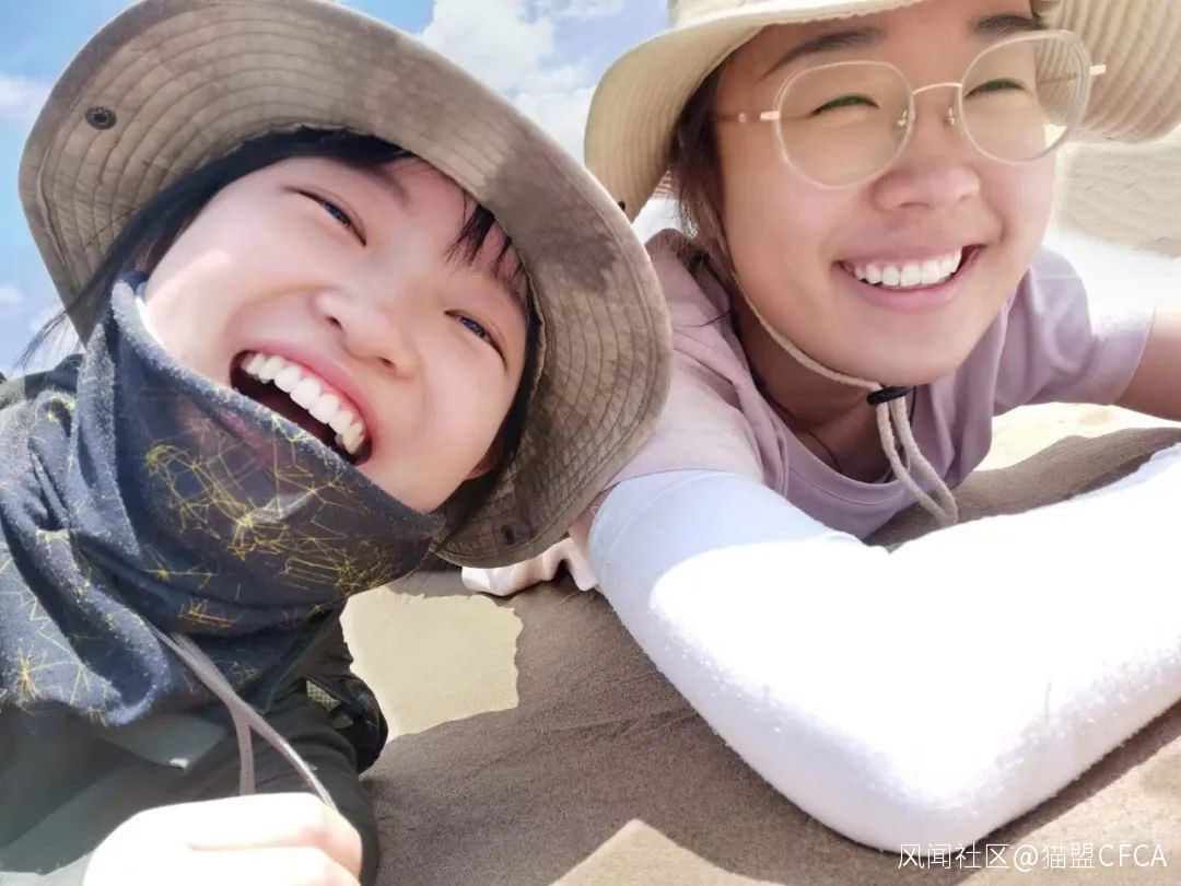 5月份在沙丘上笑得嗷嗷嗷的心悦和一晴,當時三閨女都歡天喜地滾了一遍沙坡