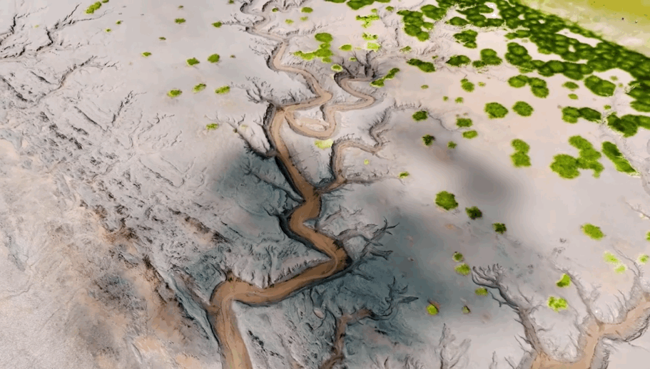 同時,在側蝕和溯源侵蝕的作用下,“潮汐樹”逐漸枝繁葉茂,形成了一棵棵“參天大樹”。
