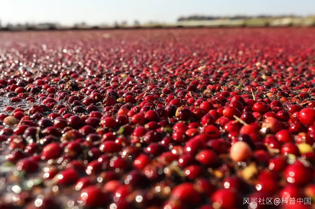 我們先來看水果,這美麗的紅海就是蔓越莓收穫時的樣子。