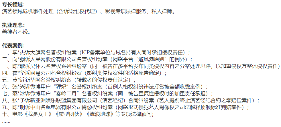 明星本人的公關問題可是直接關係到吃飯的大問題,除開藝人工作室養的公關團隊,辦事最靠譜的還得是律師。