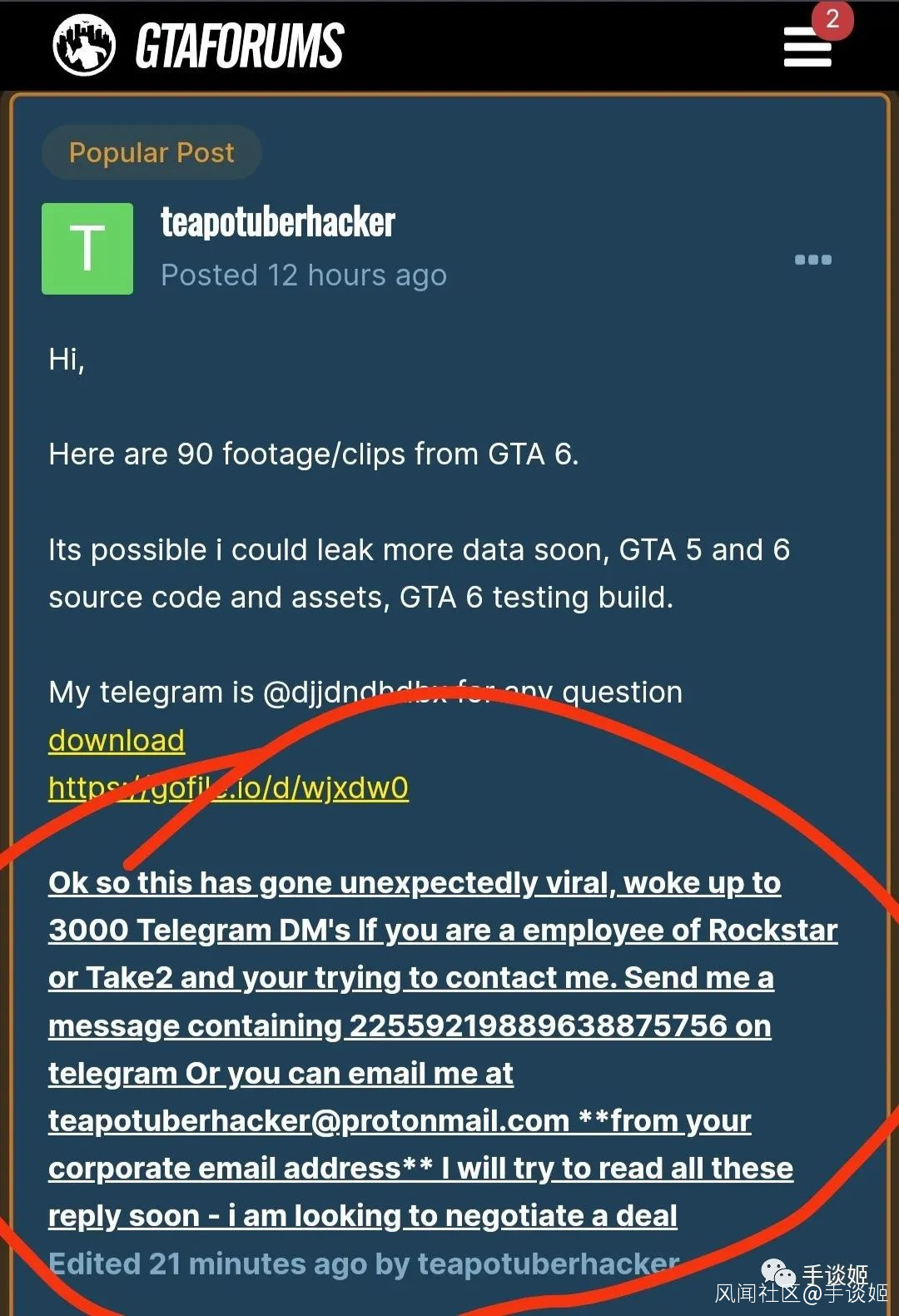 但是在上週週末,國外某GTA相關論壇上,卻有一個名叫teapotuberhacker的黑客,發佈了大量遊戲的相關片段、測試視頻和源代碼,並且表示這就是《GTA6》的信息。
