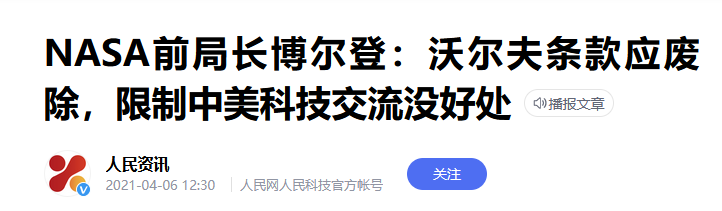 去年也有文章説NASA前局長覺得這個條款對於中美科技交流沒有好處