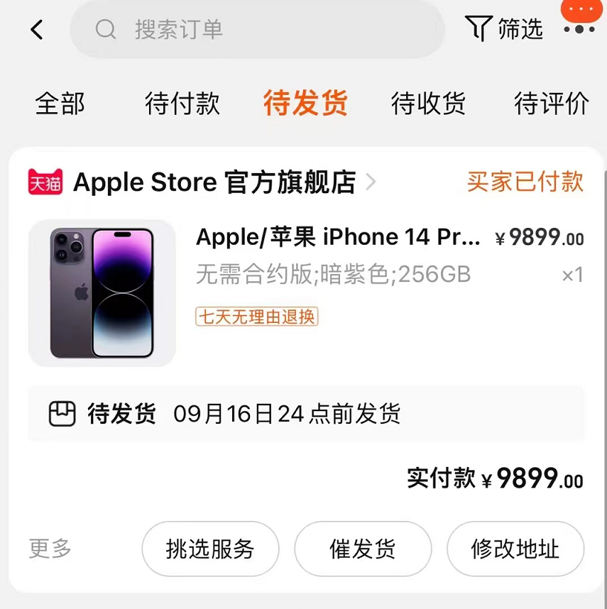 作為一名資深“果粉”,趙海每年都會跟進最新的iPhone機型,並執着於第一時間上手體驗。為了提升成功率,趙海採取了廣撒網的方式,在官網、天貓和京東三大平台同時搶購。
