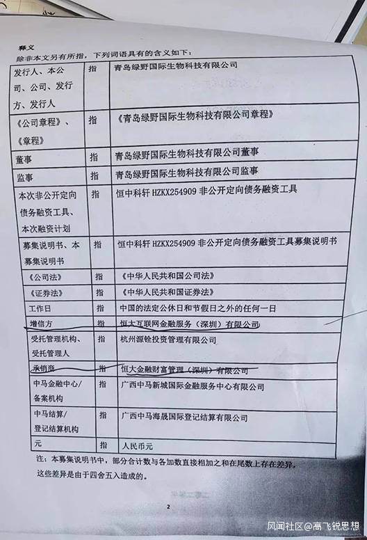 張女士最早的一筆恒大理財產品是在2016年開始買的。那些年,恒大如日中天,名滿天下,是一個讓人信得過的企業,許家印也是中國的經營之神,頭上光環如日照。在朋友推介下,看到恒大理財產品廣告,張女士蠢蠢欲動,出於對恒大品牌和許家印的信任,沒有其他錢生錢門路,覺得銀行利息太低的張女士選擇了恒大理財。剛開始,張女士還是比較謹慎,試探性地做了一兩期,果然跟理財產品廣告中承諾的那樣,利息兑現了,到期了,本金很好拿回來。嚐到甜頭的張女士徹底放心了,膽子大了起來,前前後後用自己或家人名義購買了以恒大互聯網金融服務(深圳有限公司)和恒大金融財富管理(深圳)有限公司為增信方或承銷商的恆中科軒HZKX254909非公開定向債務融資工具、恆安錦樂172509定向融資計劃、 恆安錦樂172509定向融資計劃、恆聯鋭盛676909定向融資計劃、 恆安旅隆324005定向融資計劃、恆中科穩HZKW012500非公開定向債務融資工具等多款理財產品,前後共計投入一千多萬,最高峯的時候,本金高達1600萬。