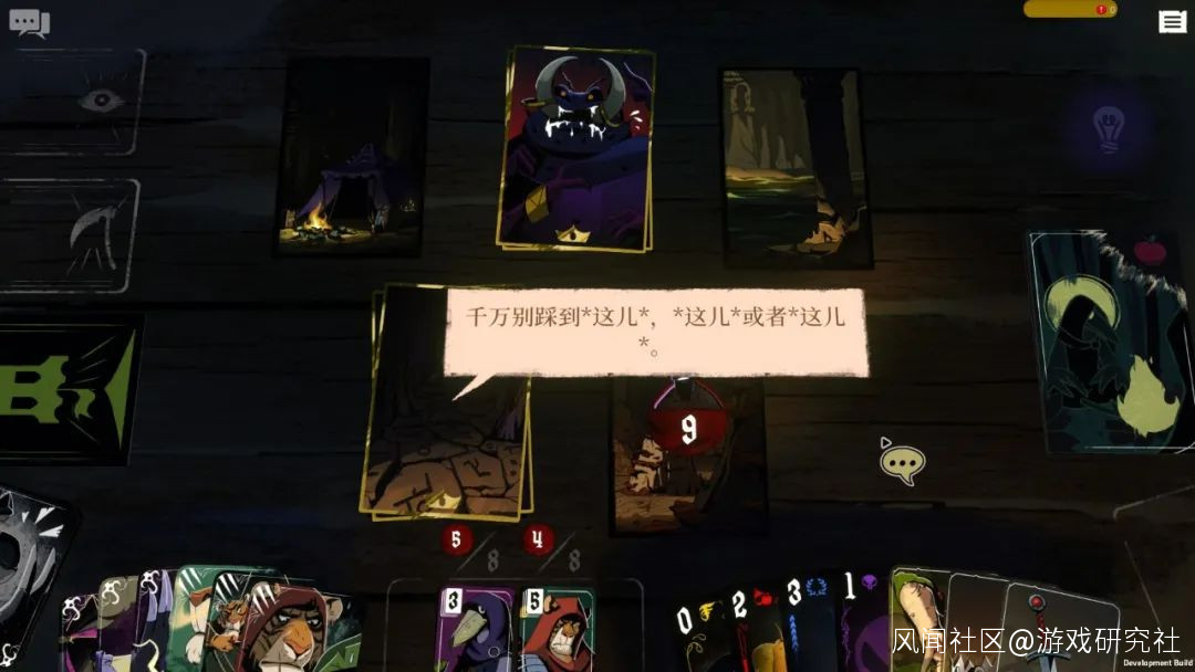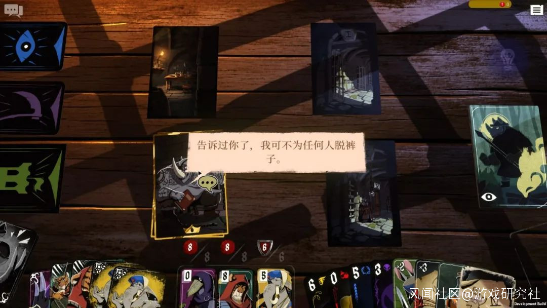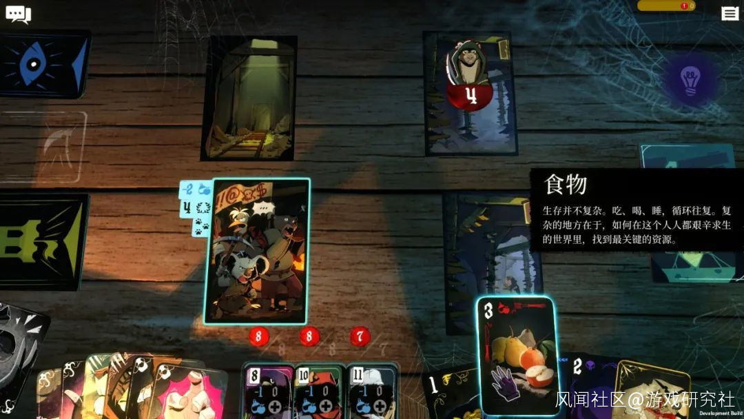 在這款卡牌遊戲裏,玩家能選擇不同的出場角色,每個角色也各有所長。作為主角且固定出場的沃爾佩恩是個身手矯捷的小偷,它有着「偷竊」「偷聽」「集結眾人」等基礎技能牌;主角的好友里奧更擅長生存,有「攻擊」「尋路」「獲取食物」等能力……