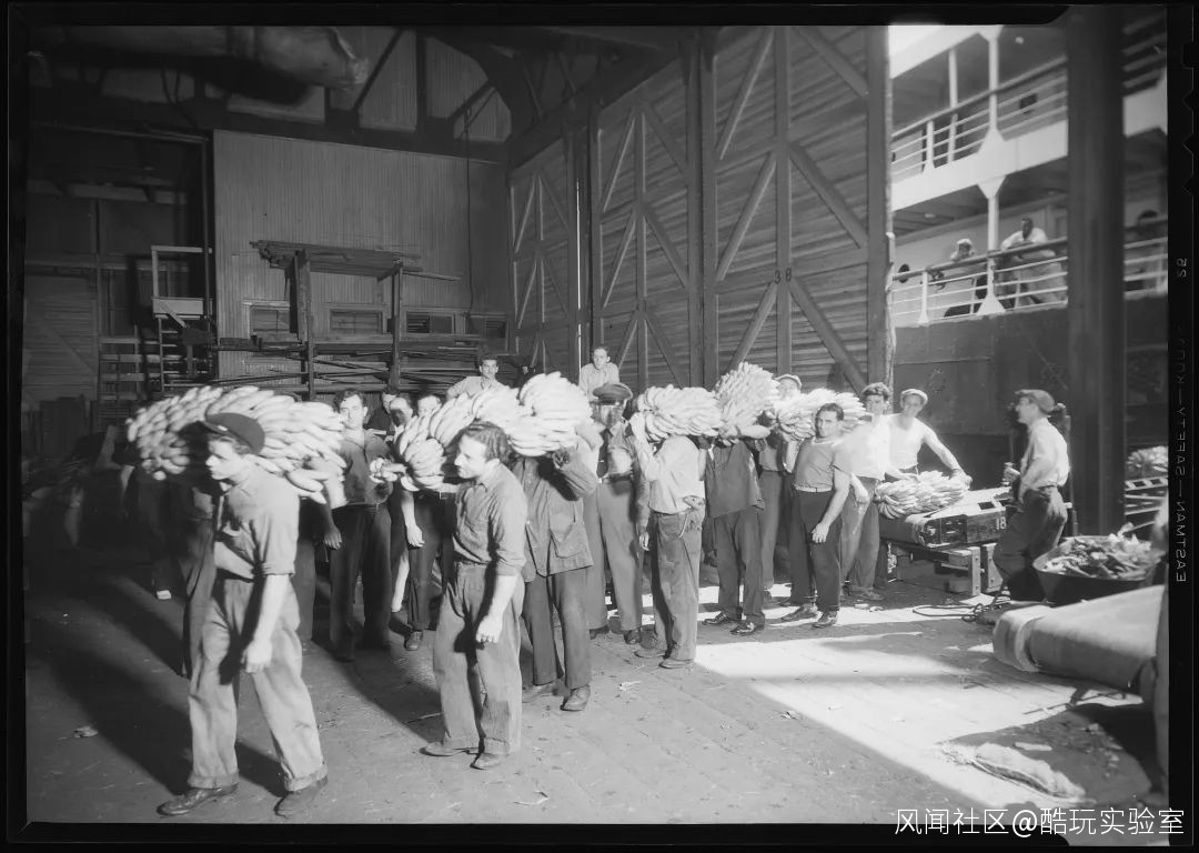 因為幾千上萬噸貨物的船艙,可能堆滿了橘子、鋼絲、棉布,而且發貨的工廠需要一件一件的把貨物裝到火車或者卡車上,到了碼頭又要挨個卸車,反覆清點數量。碼頭上裝卸工有的扛麻袋,有的推車來回飛奔,各種貨物與垃圾一片,亂成一鍋粥。