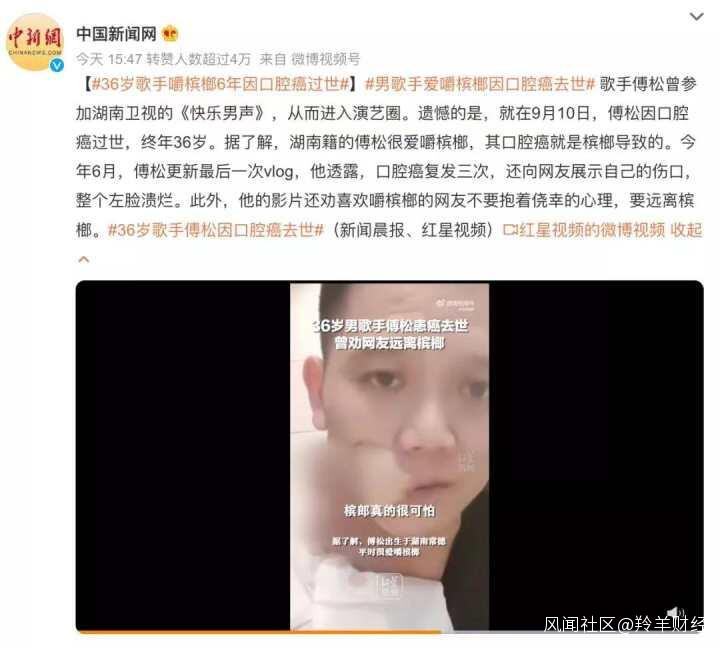 歌手因檳榔去世,輿論禁售檳榔呼聲再起_風聞