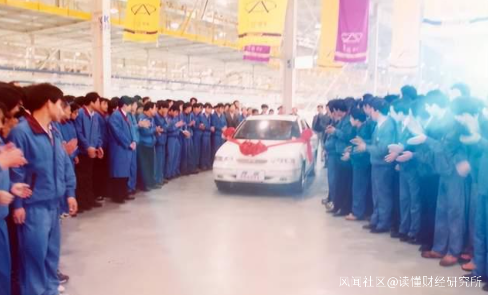 因為能自主研發發動機,奇瑞在90年代末推出了首輛“風雲”轎車,這款車不僅外觀造型優於同期所有國產車,價格更是低了三分之一,一時火爆市場。