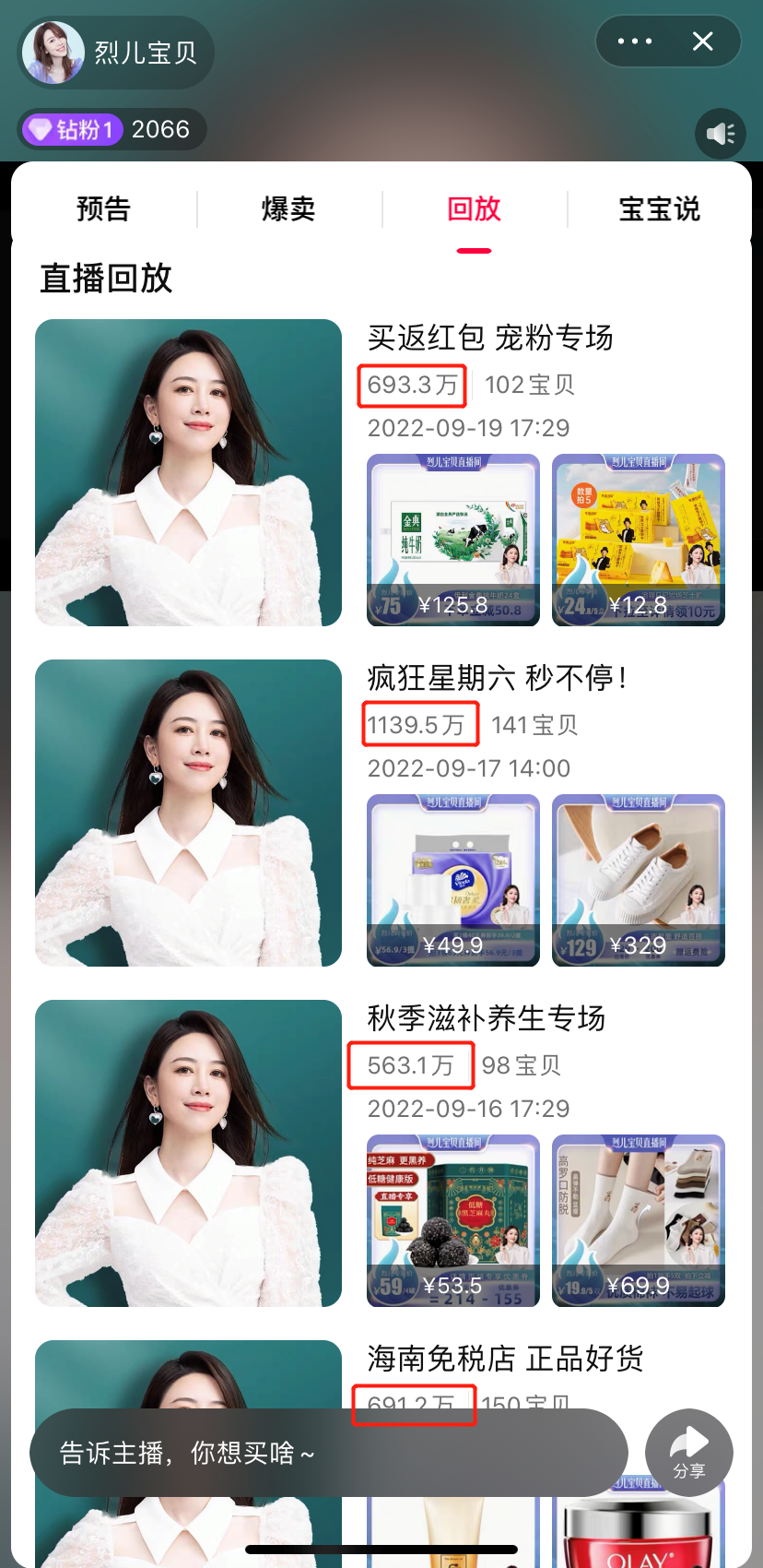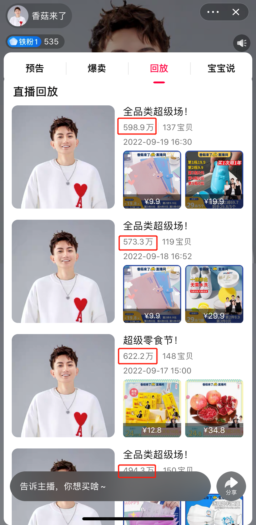 李佳琦復播前夕,烈兒寶貝場觀(每場觀看人數)維持在600萬上下,偶有活動時,能衝上1000萬,而此前薇婭、李佳琦最低的場觀都超過1000萬,2000萬也是常態。陳潔kiki比烈兒寶貝略遜一籌,場觀艱難維持在500萬上下。雪梨因税務問題退出直播間後,其丈夫和助播團另起爐灶開設“香菇來了”,但場觀也在500萬上下徘徊。即便是薇婭助播團新開的淘寶直播號——蜜蜂驚喜社,場觀也只在600萬左右。