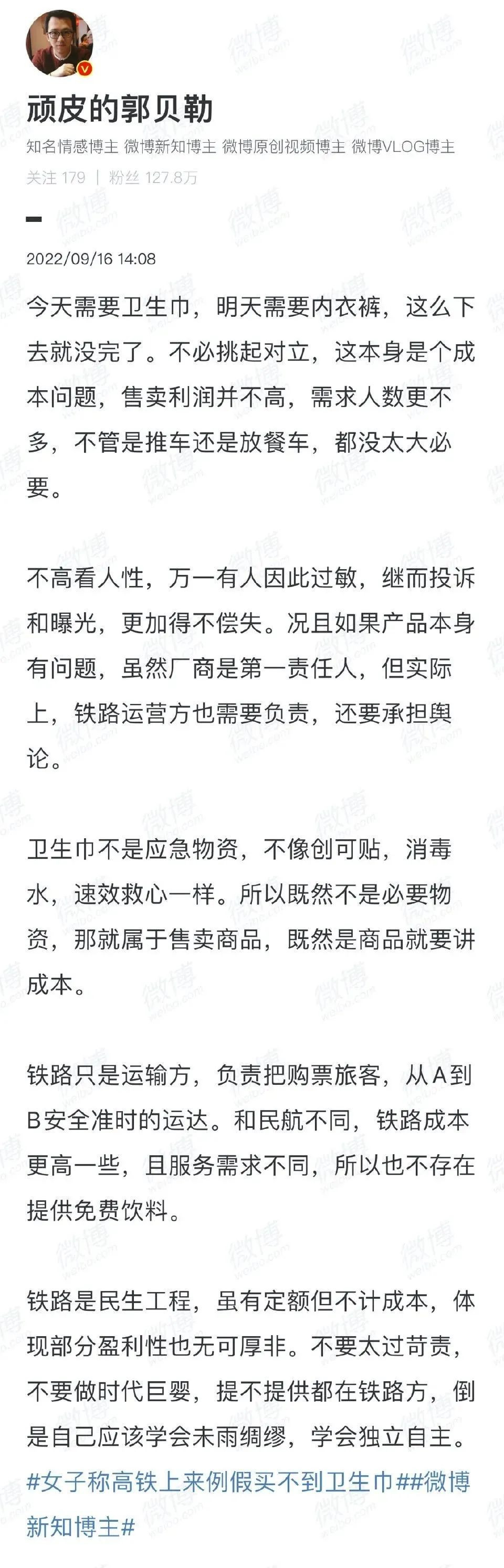 高鐵是否賣衞生巾都能上熱搜,這世界是怎麼了?_風聞