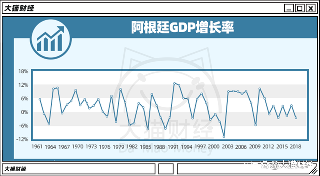 跟貨幣相關,阿根廷的GDP也走出了心電圖一樣的神奇走勢,今年12%,過兩年可能是-12%,基本無法預測。