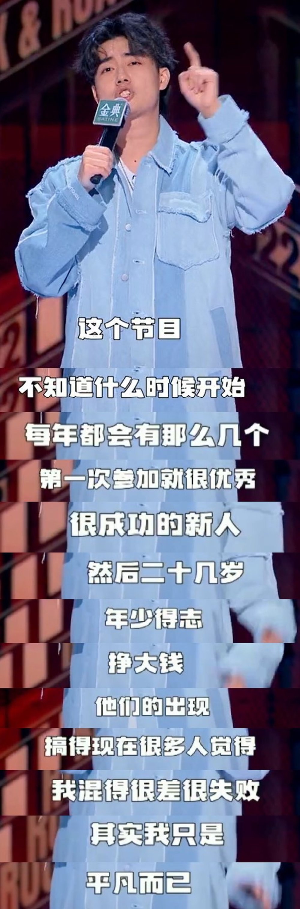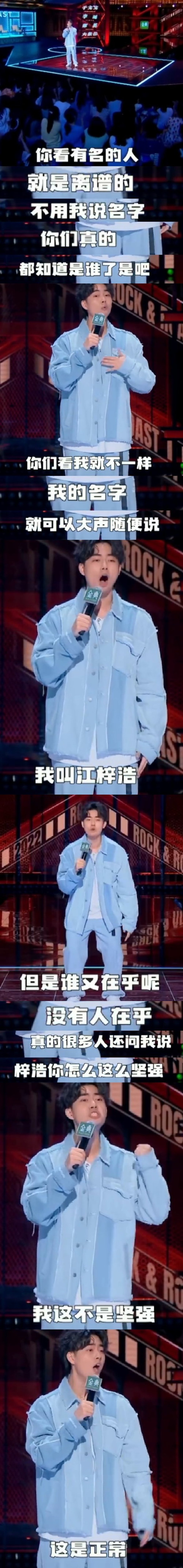 江梓浩先是吐槽,稱不知道為什麼這個節目每年都會出現很多,第一次參加就很優秀的,二十幾歲的年輕人。因為這些人年少得志掙大錢,搞得很多人都覺得他混得很差,很失敗。