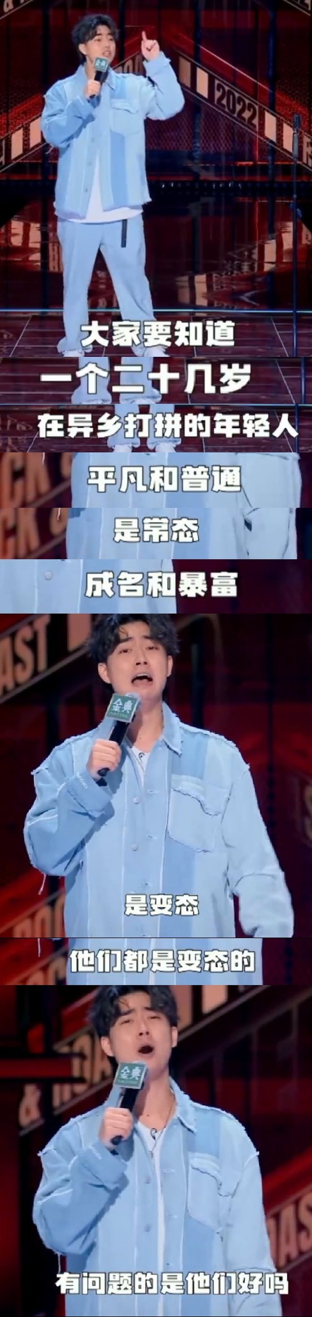 隨後江梓浩又説,作為一個二十幾歲在異鄉打拼的年輕人,平凡和普通是常態。至於成名和暴富,那不是常態,那是變態,有問題的是他們好嗎?