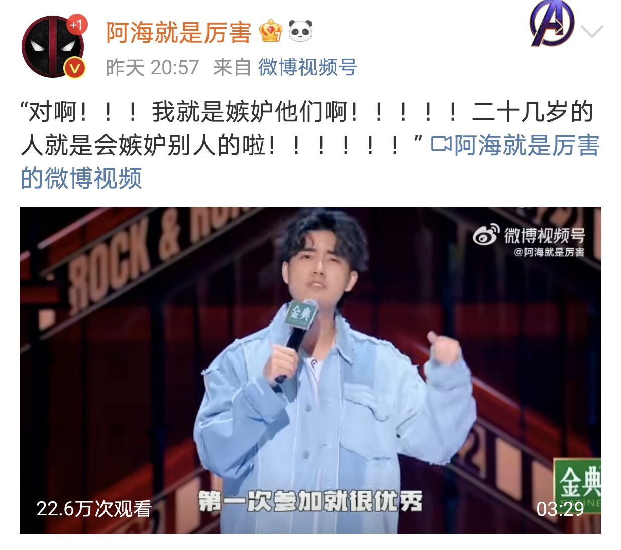 最後,江梓浩理直氣壯地説,自己説了這麼多,就是嫉妒那些年少得志的人。