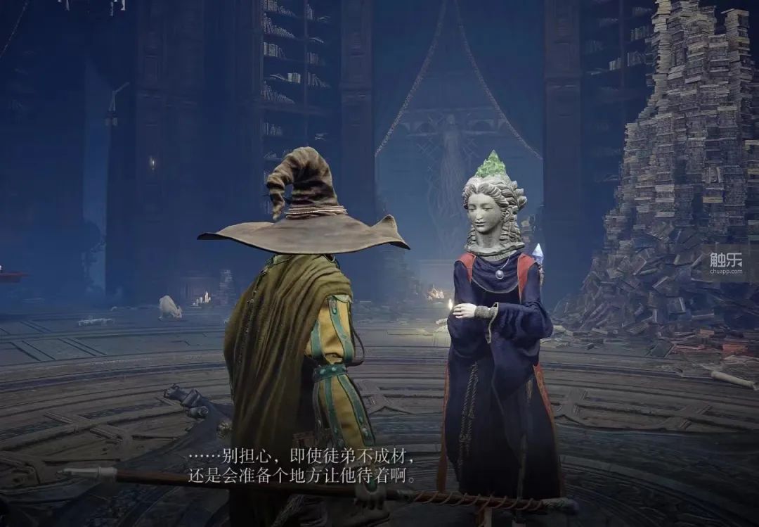但問題是,這個時機也不是總能把握好。在“老頭環”裏玩法師,大多數時候還是很容易通關的。尤其我這種概率選手,指不定哪把就過了,而這時我可能還沒來得及從相聲模式中切出來。於是,交界地被迫上演了這樣的場景:當猩紅腐敗的蝶翼在聖樹下迅速凋謝,瑪蓮妮亞最終還是沒能等到米凱拉的歸來,走到生命盡頭的女武神緩緩開口:我穿這馬褂對他有好處……