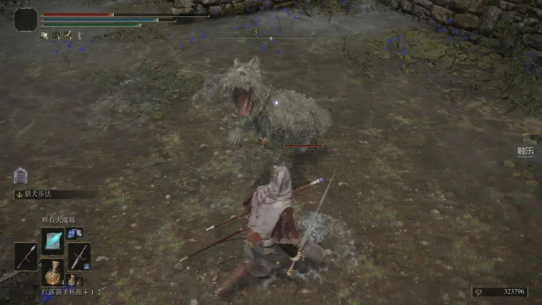 即便如此,我還是被宮崎桑上了不止一課。我極富自知之明,當然是選擇了占星師作為職業。剛走出漂流墓地,駐足欣賞了10秒寧姆格福美景後,因為喜歡在開放世界裏到處亂跑,我就根本沒理近在眼前的白麪具,一頭向着遠處的大湖衝了過去。一路上砍死幾隻醜醜的蝙蝠,感覺很是輕鬆。到了湖邊廢墟,裏邊行動遲緩的殭屍們看起來也並不難打。然後在下一秒,還沒等反應過來,我就被突然竄出來的瘋狗咬死了。接下來的半個小時裏,我在這片廢墟中反覆被那幾條髒兮兮的長毛瘋狗咬死十幾次,最終乖乖繞路離開。我心有餘悸,還以為是自己不走尋常路,才撞上了本不該現在挑戰的強力小怪。後來才發現,整個遊戲裏也沒幾條這樣的狗,就是專門放在那兒折磨新人的!