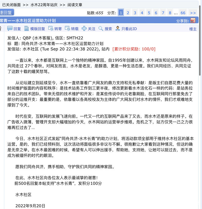 22年的水木社區沒錢了,要運營不下去了_風聞
