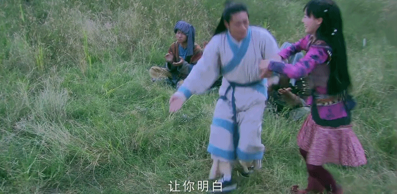 回魔教日月神教時,黃白外袍,硬是要配着個紅粉色腰帶,配色不協調,與其説她是魔教的二把手,不如説像是個小宦。